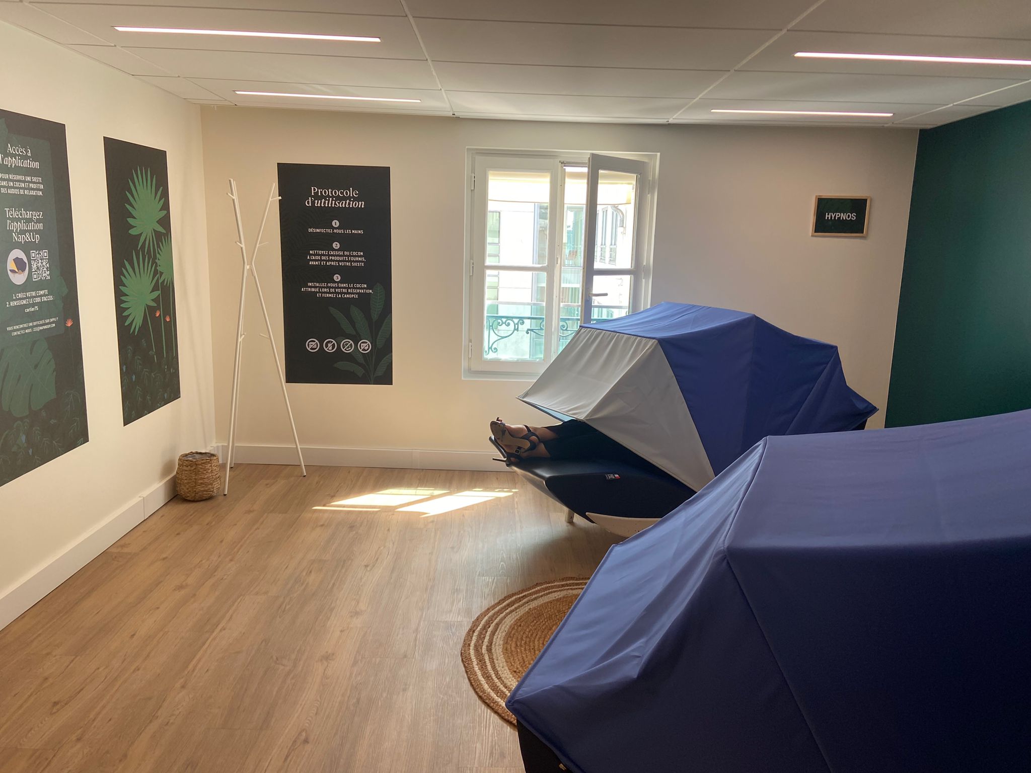Si vous le pouvez, variez les options pour que chaque employé puisse choisir la solution qui lui convient le mieux. Pour plus d’intimité, disposez des paravents entre chaque élément pour une sieste en toute tranquillité.