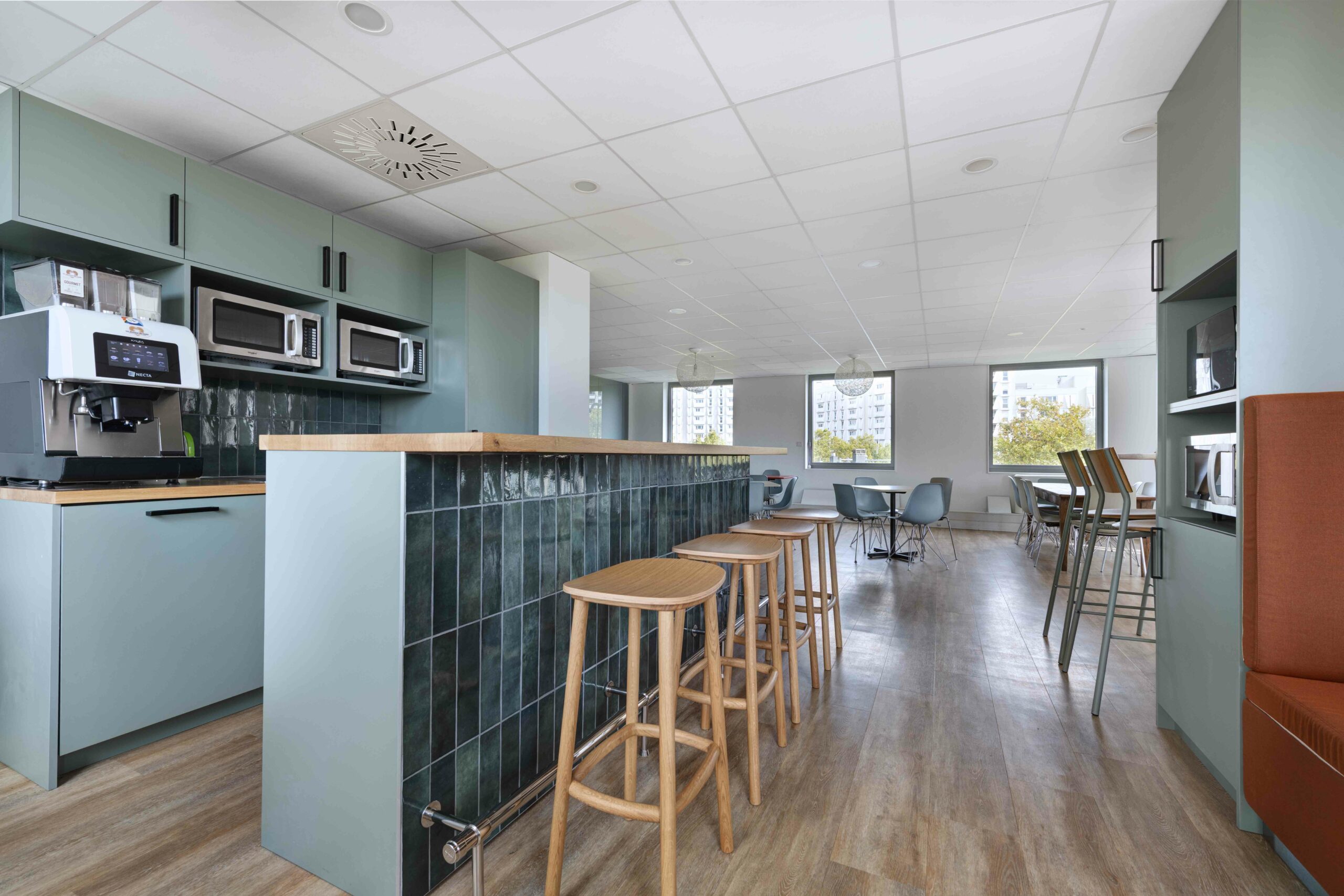 L’objectif : un espace repas repensé, des zones collaboratives plus vivantes, des salles de réunion et de repos réinventées et un accueil devenu espace événementiel hybride